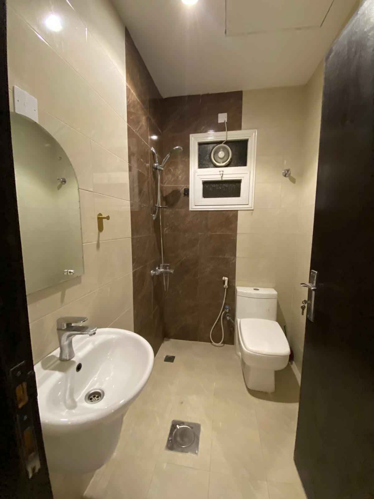 حمامات راقية: تشطيبات الحمامات ممتازة مع استخدام أطقم صحية حديثة وكبائن شاور زجاجية أنيقة.