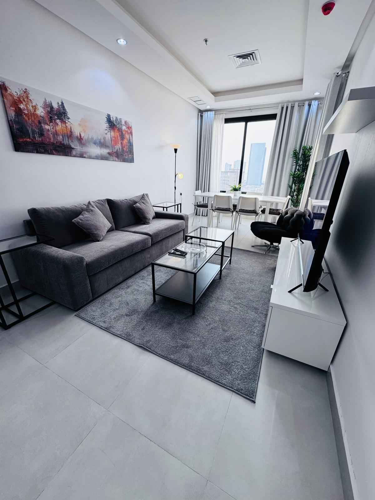 شقة مفروشة للإيجار في السالمية، موقع مميز،بناية حديثة قريبة من جميع الخدمات، مارينا مول، شارع سالم المبارك، وقريبة من سوق السالمية للوافدين. غرفتين نوم، منها ماستر، مع حمام خارجي كامل، وصالة مع بلكونه، ومطبخ مجهز بجميع الأجهزة الكهربائية الحديثة. تشمل الخدمات تنظيف، لوبي مع إنترنت، وجيم مجهز بأحدث الأجهزة الكهربائية