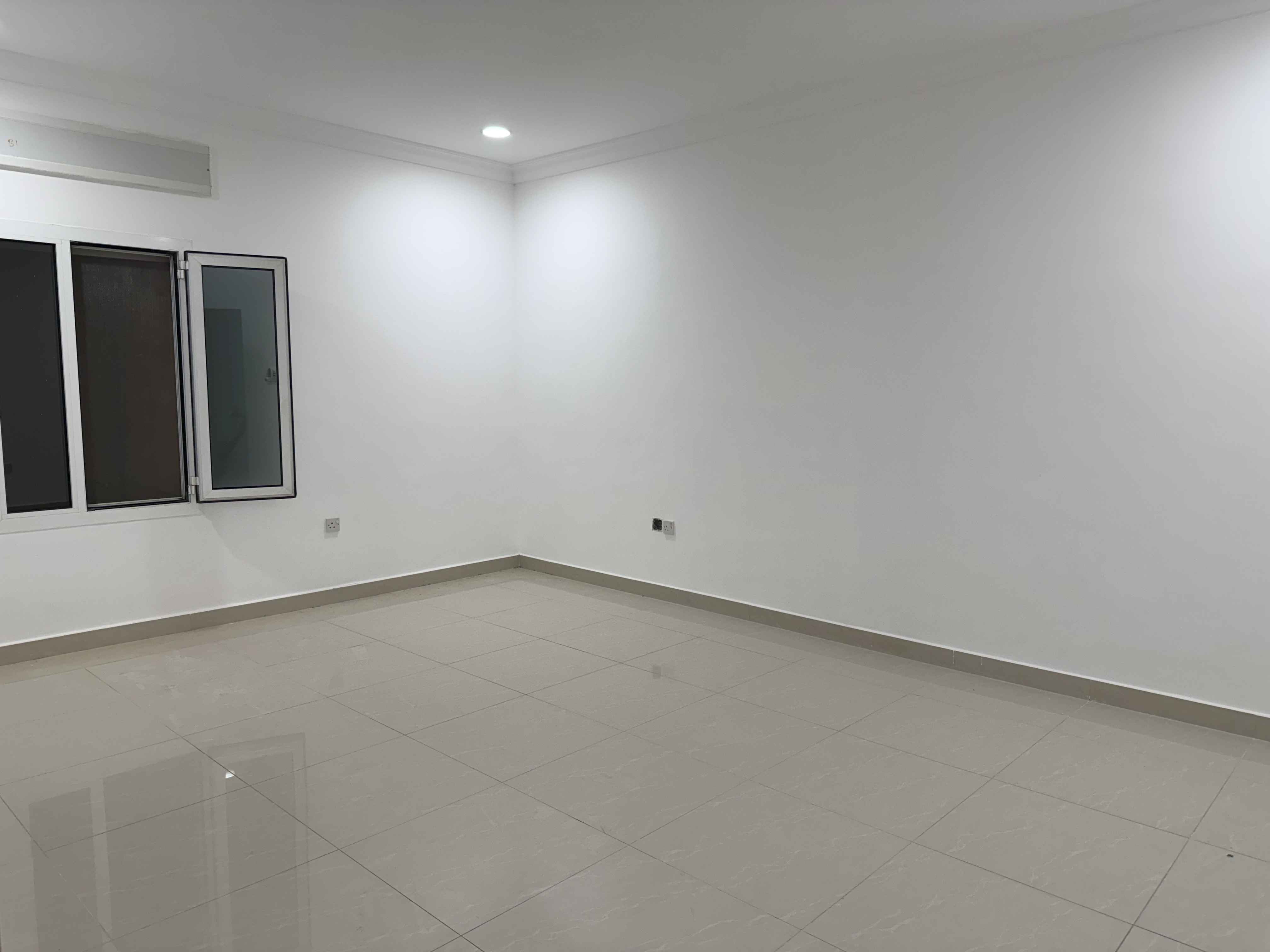 4 غرف نوم "منهم 2 ماستر" ، صالة كبيرة و صالة ثانية مربعة بين الغرف وبينهم حمام خاص للصالتين - غرفة عاملة وحمام - ومطبخ كبير مجهز "مساحات الغرف واسعة" - وموقف خالص للشقة لـ 3 سيارات خلف بعض بالسرداب ( الإيجار 800 د.ك )